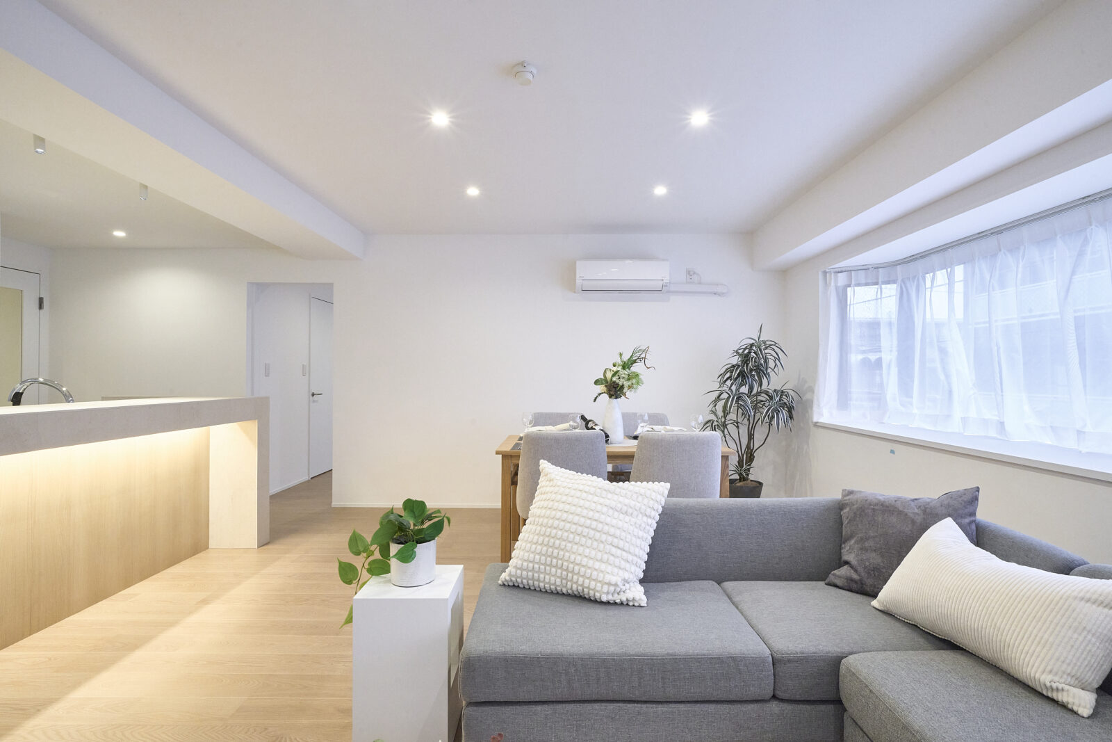 閑静な住宅街の静寂が、外の喧騒を遠ざけ、家族の「美味しいね」という声だけを際立たせてくれる。 本物の素材と光に守られながら、一日の出来事を語らう。そんな贅沢な時間が、この家には流れています。