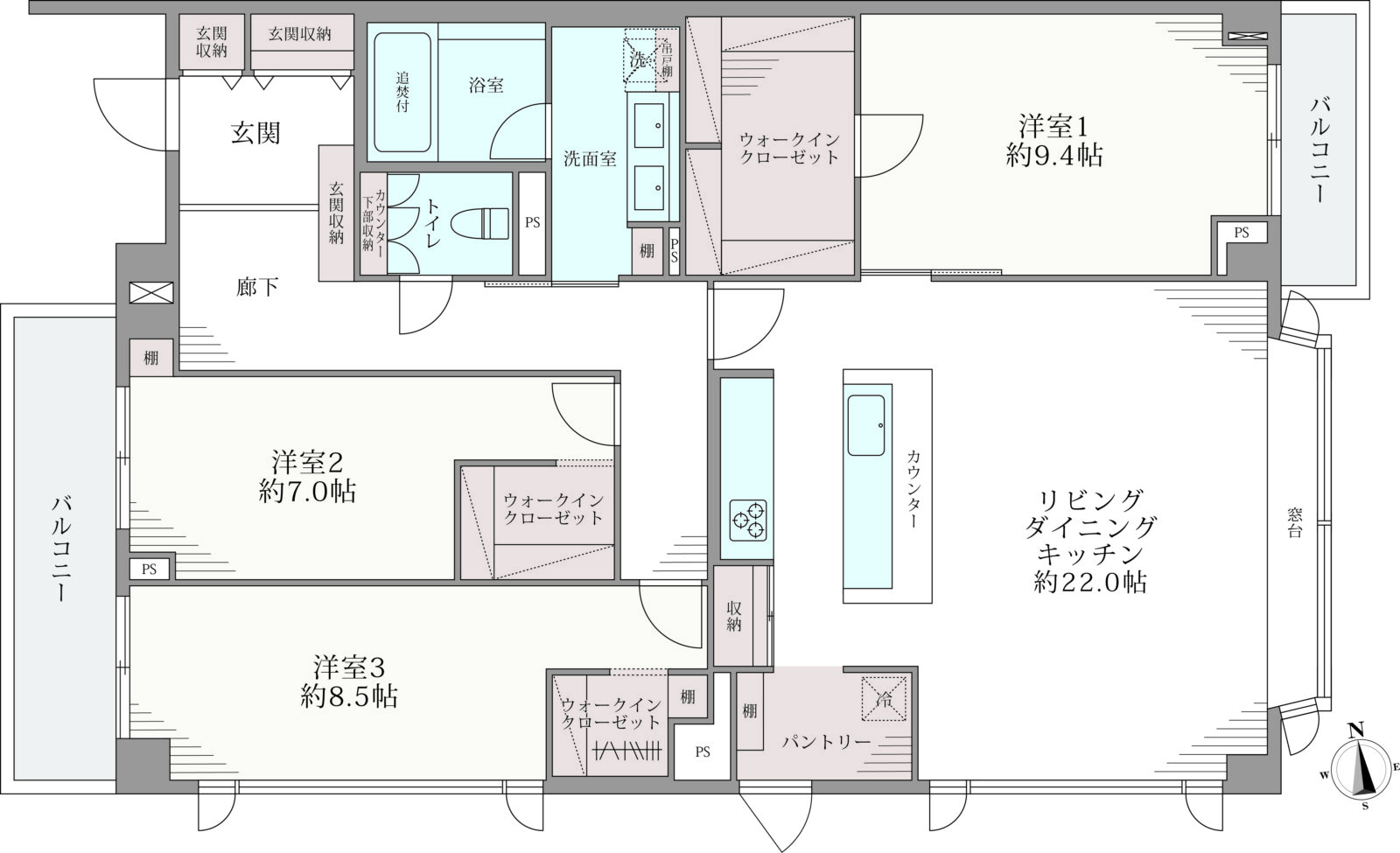 朝、真っ先に家族を揺り起こすのは、窓いっぱいに広がる眩い朝日です。全室バルコニー付きだからこそ、どの部屋にいても一歩外へ出て、新しい一日の空気を胸いっぱいに吸い込むことができます。