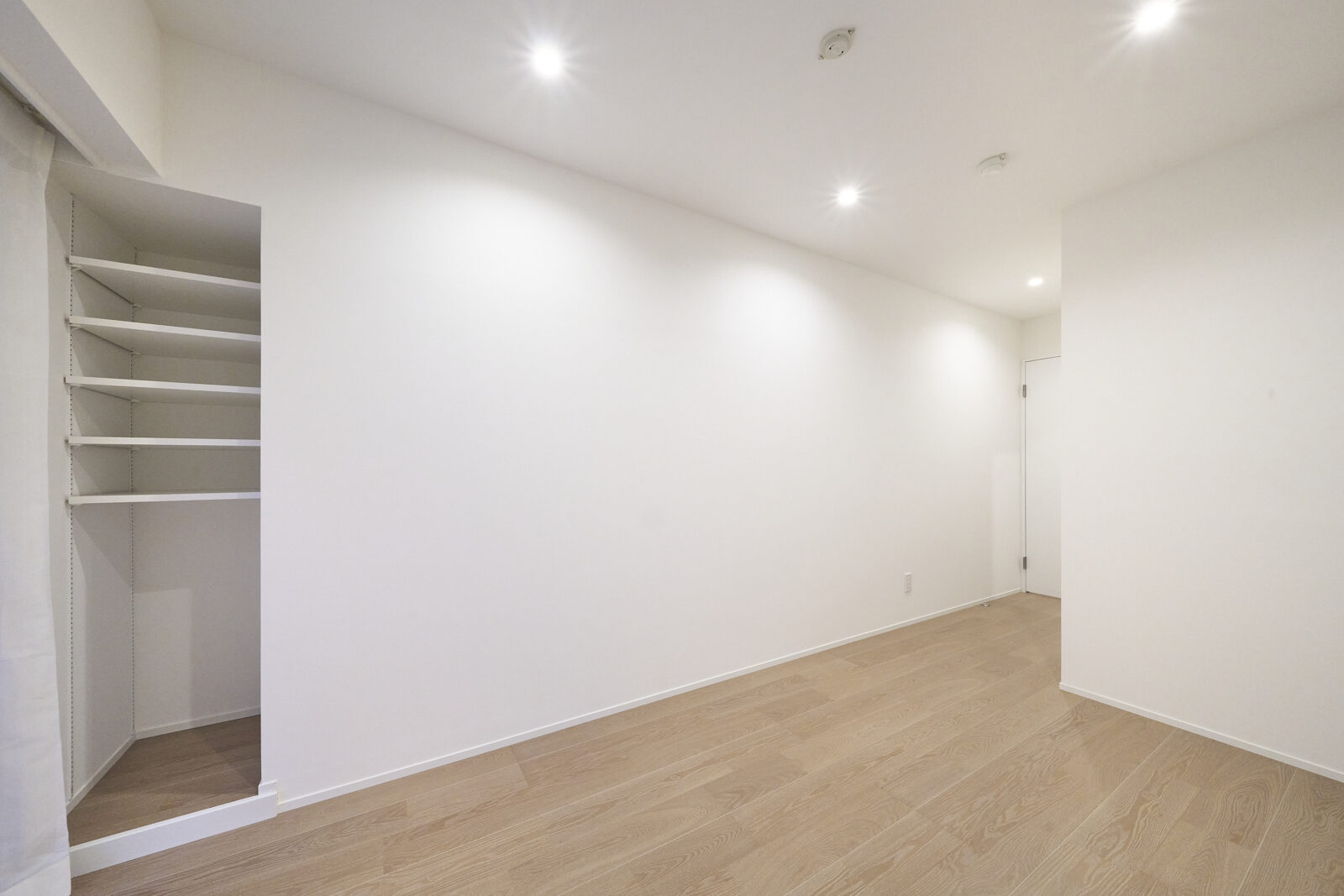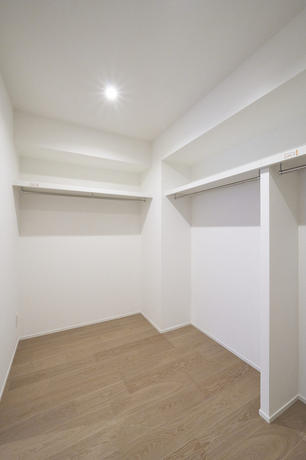 の声とともに、家族はそれぞれのプライベートな空間へ。全室に備わった広々としたWIC(ウォークインクローゼット)が、一日の衣類や大切な荷物をゆったりと受け入れてくれます。物が表に出ないからこそ、寝室は静寂に包まれた「整った」場所に。バルコニーの窓を少し開ければ、閑静な住宅街の澄んだ夜風が、心地よい眠りへと誘います。