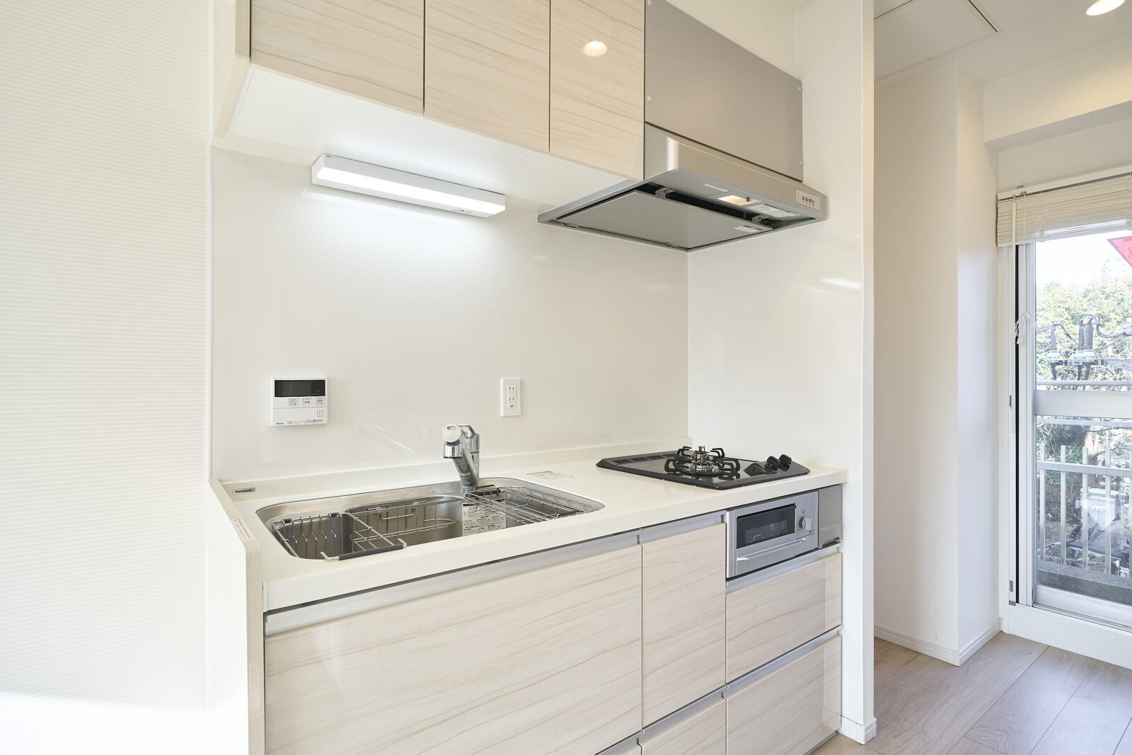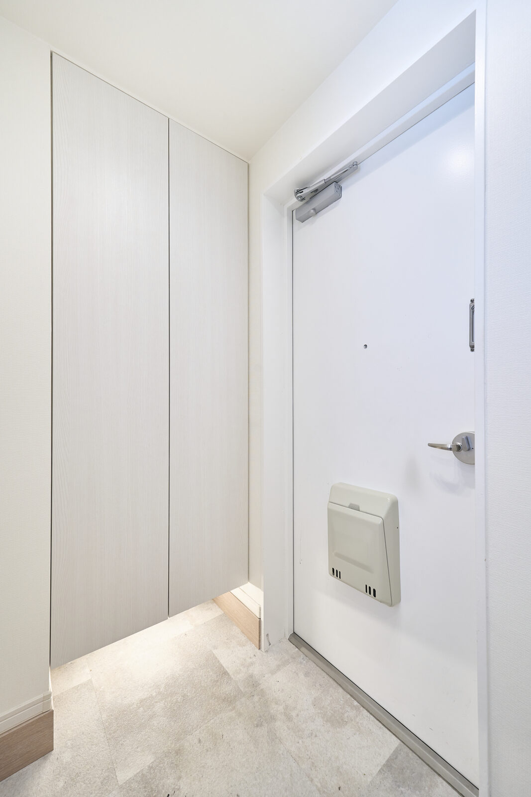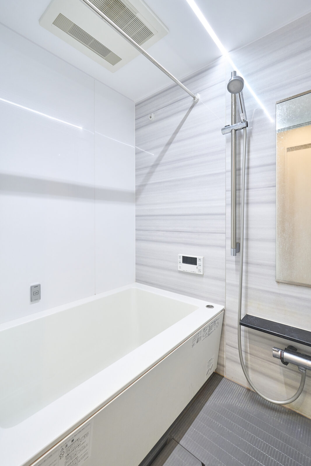 壁面、天板、扉、床のタイル…多様なホワイトが存在することをあらためて実感する。