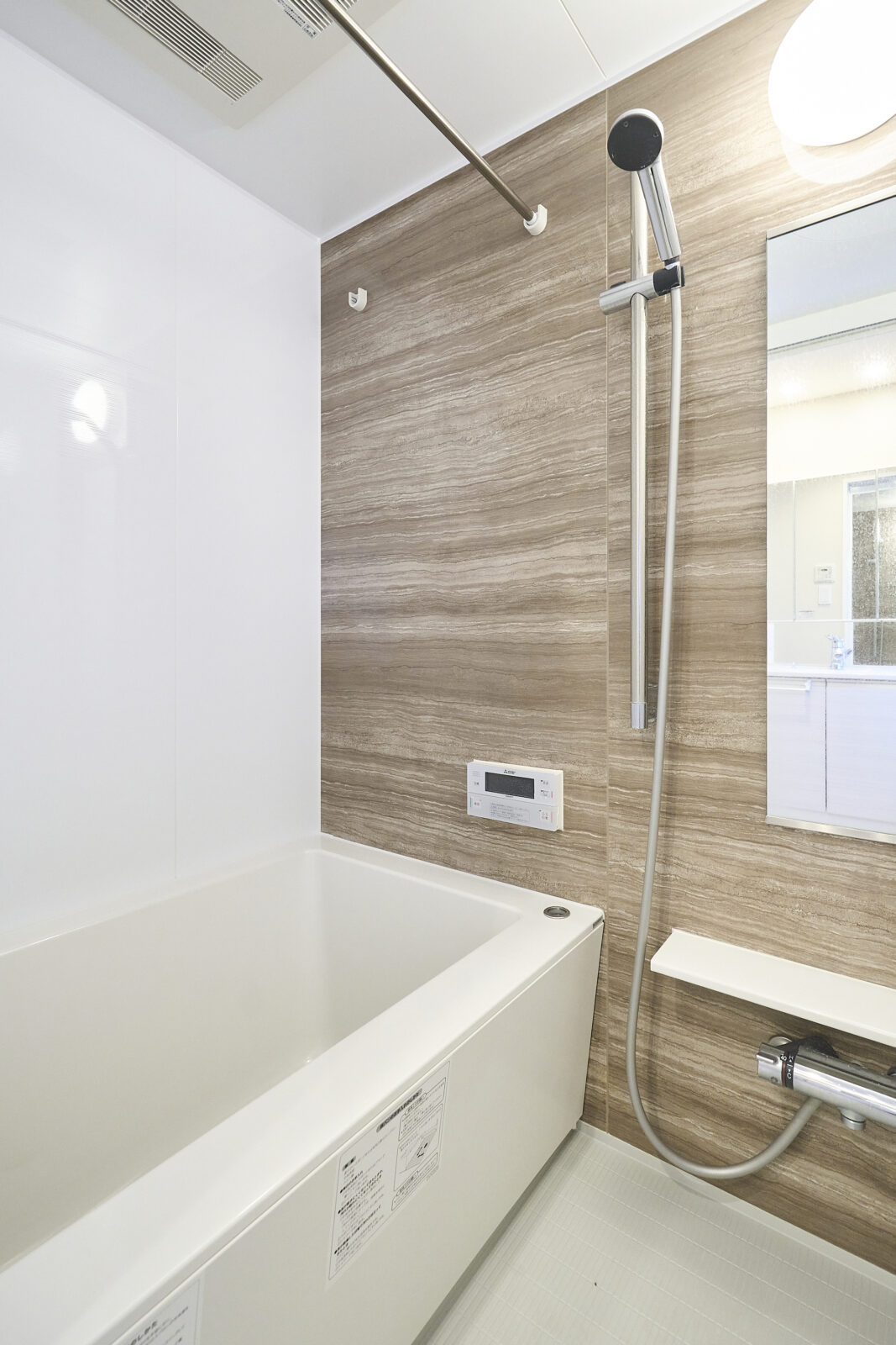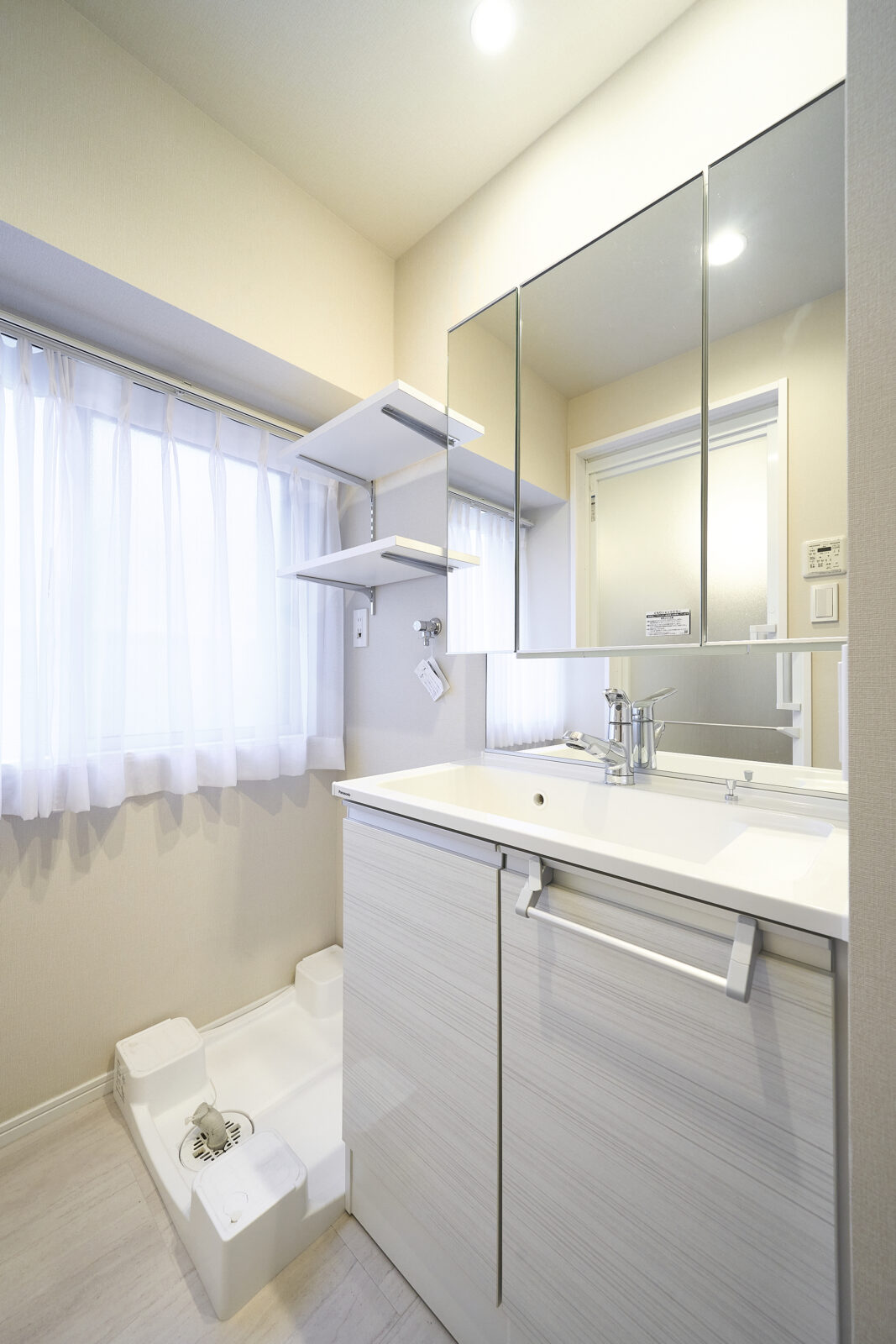 明るく木目調で統一されたサニタリースペースは、日々の疲れを癒してくれる。