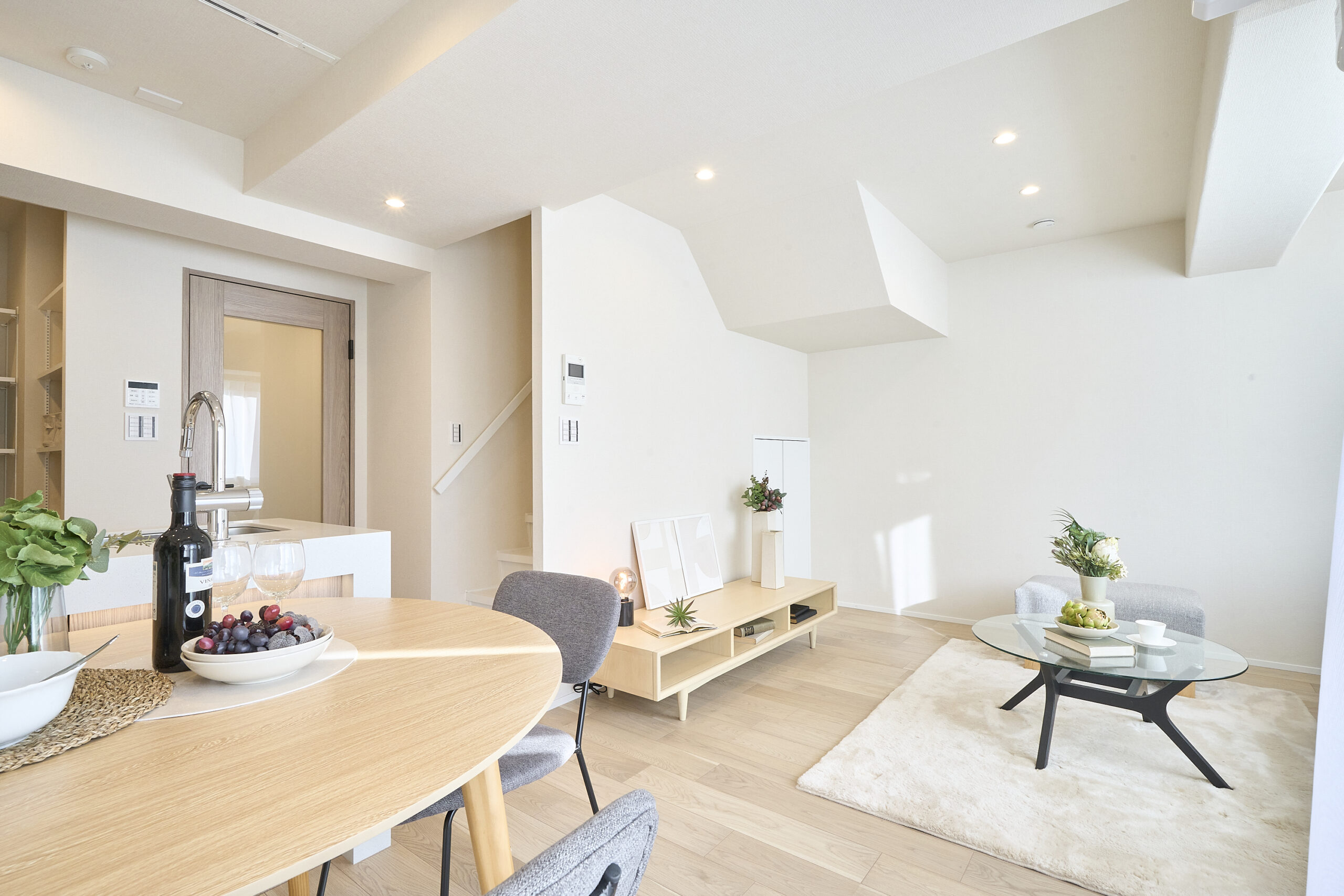 例えば下階は家族の団欒や気心知れた友人や同僚を招いてホームパーティー向けに、上階は寝室や書斎、子ども部屋やワークスペースなど、住む人の目的に応じた空間に。