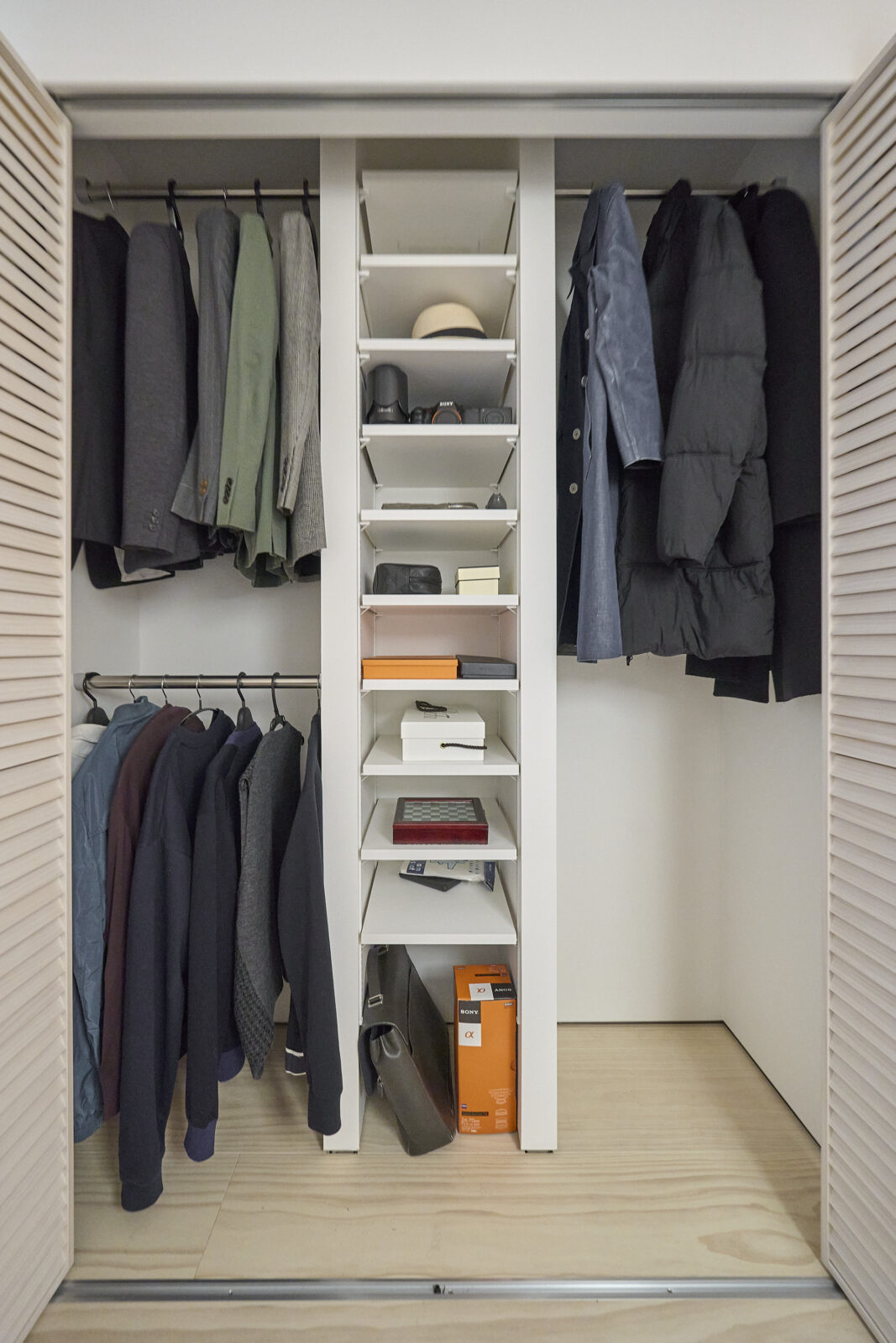 「まあまあまあ、このクローゼットもWOOD ONE の WOシリーズで、ソフトクローズ付だからゆっくり扉を閉められるんだよな。」
