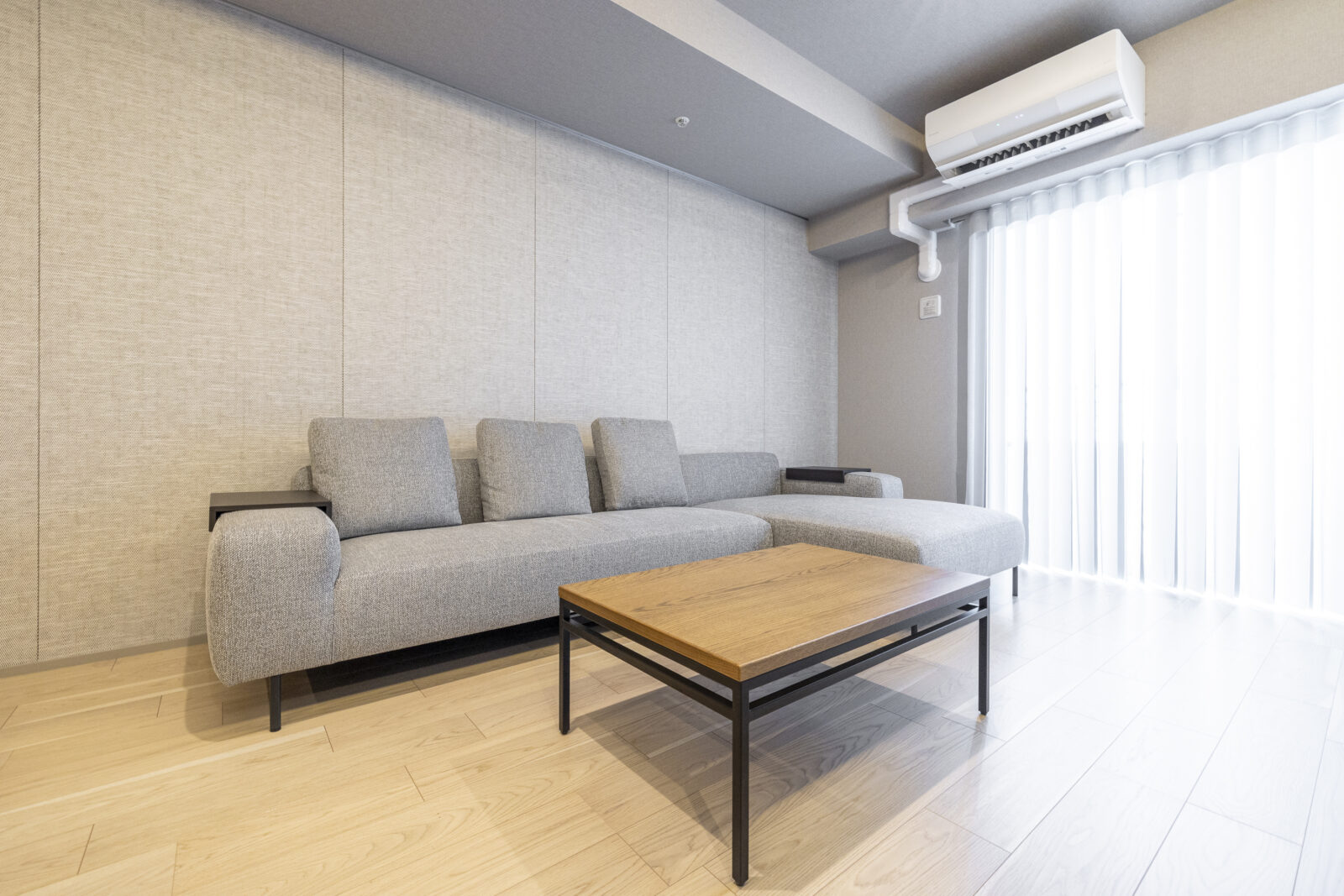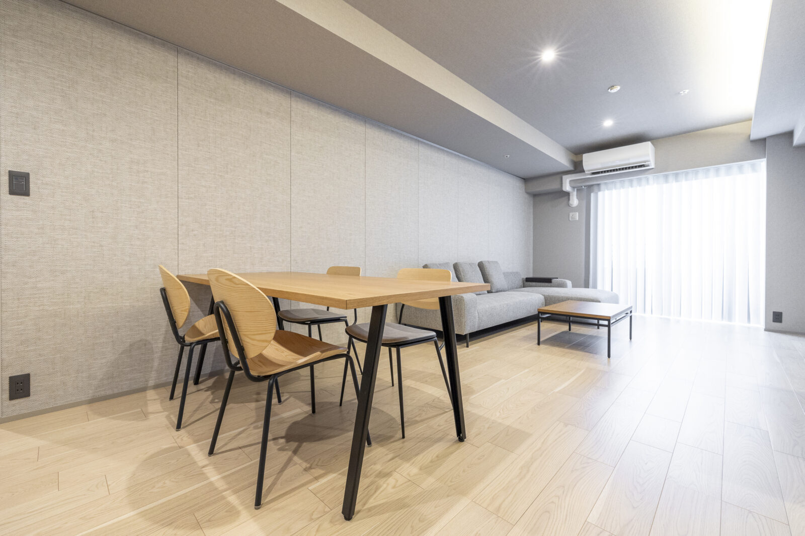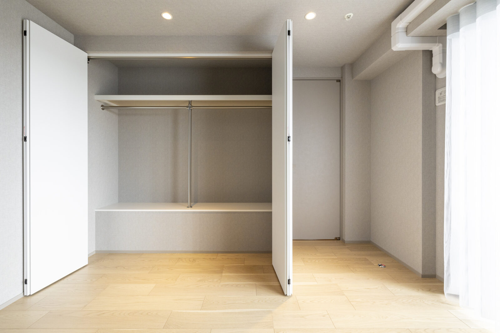 主寝室である洋室1には、NORMANの「スマートドレープシェード」を採用。柔らかな光に包まれて目覚める心地よさと、閉じたままでもバルコニーへそのまま通り抜けられる機能性は、暮らしの動線をどこまでも軽やかに、美しく整えてくれる。